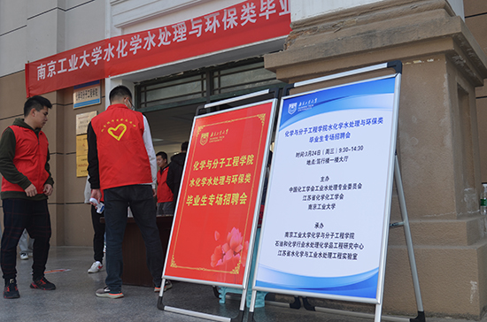 2021年3月24日,由中国化工学会工业水处理专业委员会、江苏省化学化工学会和南京工业大学联合主办的水化学水处理与环保类毕业生专场招聘会在南京工业大学举行。招聘会搭建了企业和大学生择业、就业桥梁和合作平台,邀请了54家企业提供了二十余个专业和近千个招聘岗位,全校近千名毕业生积极投递简历,并与企业面试人员进行了深入交流,以寻找适合自己心仪的工作,能够将在学校中习得的知识通过这次招聘会转化为社会所需,以学筑梦、以识助国,成长为国家之栋梁。