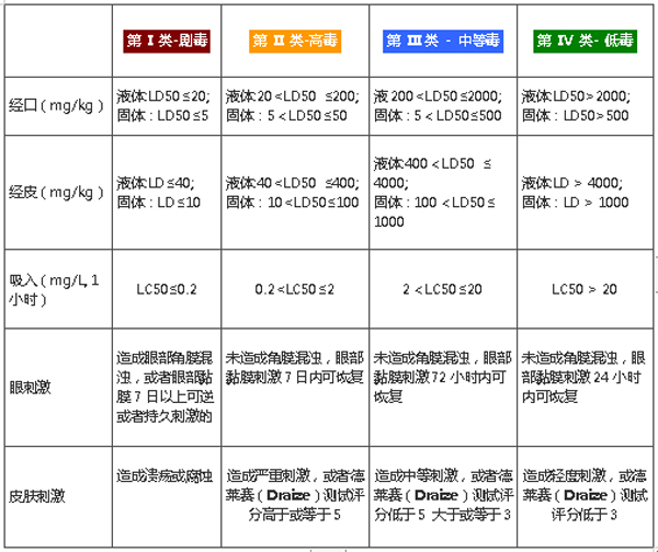 根据新的分级标准:眼刺激性和皮肤刺激性两项试验的毒性结果将不作为毒性分级依据。