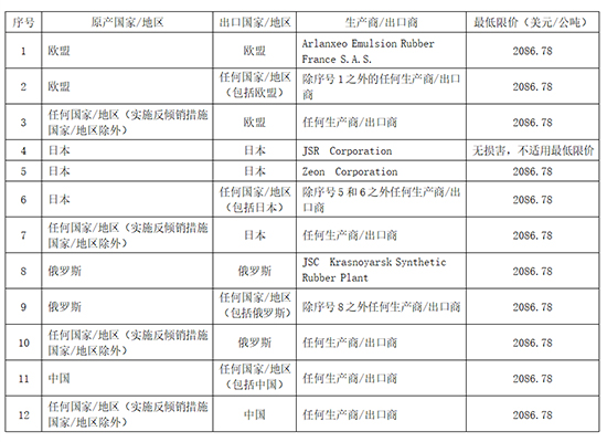 附表:印度对涉华丁腈橡胶终裁结果