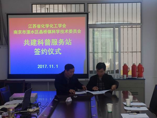上午,省化学化工学会副秘书长张建国、南师大化科院副院长张守林、科普工作委员会委员赵传峰以及科普志愿者一行九人与晶桥镇社区学校、镇科协、镇食品药品安全委、镇文教卫办相关人员,针对学会科普工作长效机制等方面进行了座谈。双方就科普活动开展长期合作进行了协商,并达成了一致意见,就省化学化工学会与晶桥镇社区教育中心、镇科学技术委员会、镇食品药品安全委员会共建科普服务站签订了合作协议,双方建立了科普宣传与服务长效机制,学会将在晶桥镇开展专家讲座、科普大讲坛、市民学堂等各个层面的科普活动。