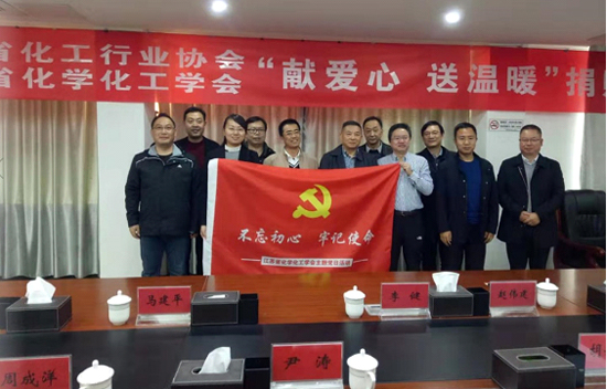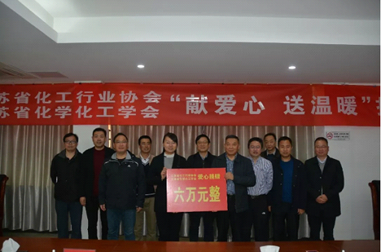 11月23日上午,省化学化工学会秘书处支部全体党员在常务副理事长赵伟建带领下再次赴淮安市淮阴区渔沟镇开展“献爱心、送温暖”捐赠活动。省工信厅原材料处处长李健、渔沟镇党委书记胡娟娟、省扶贫办淮安扶贫队有关人员参加了捐赠活动。